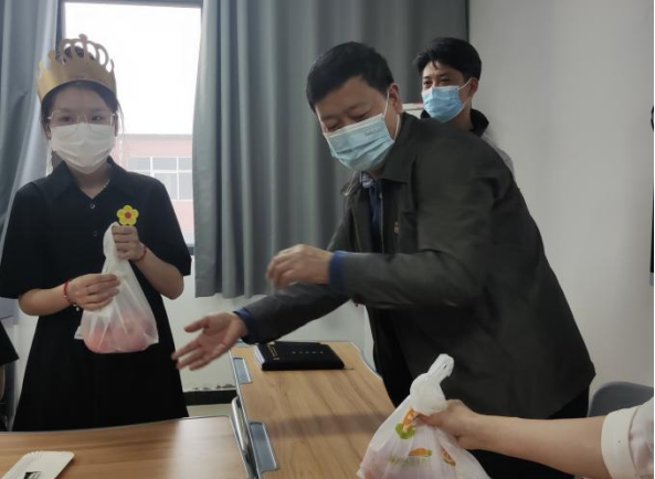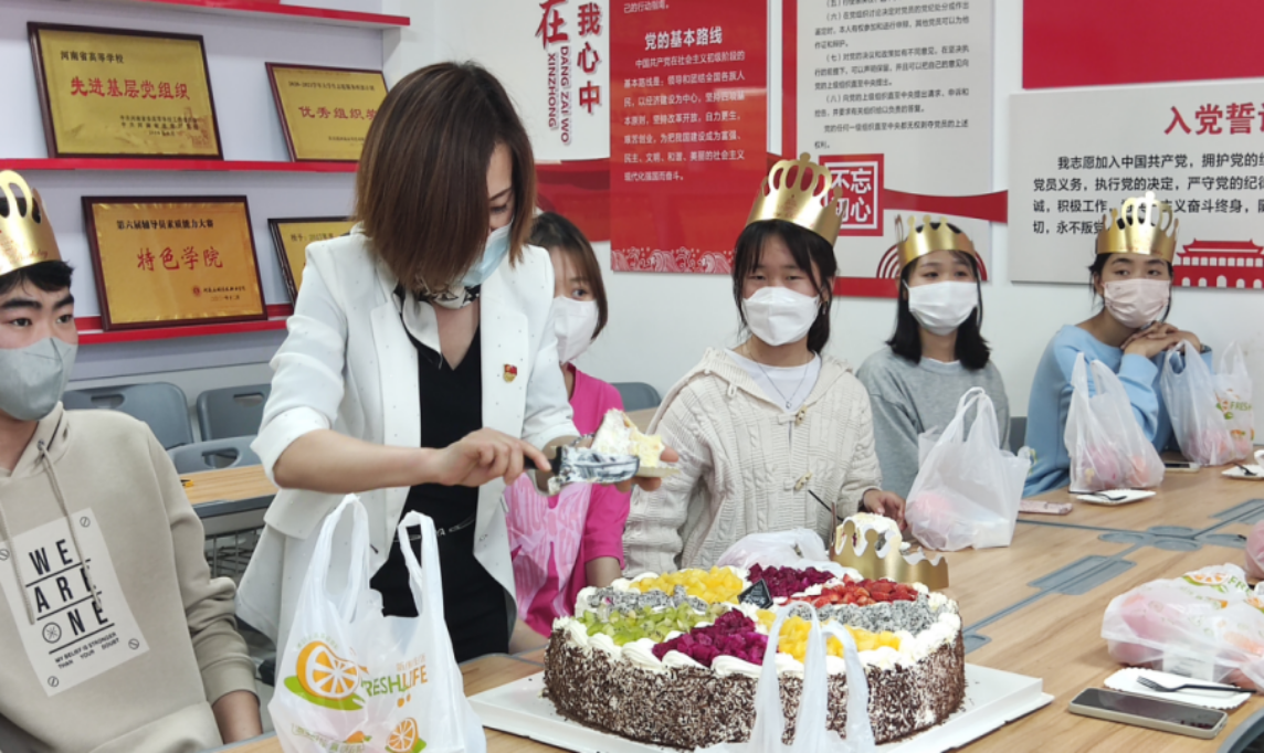 周燕书记为同学们切蛋糕,分蛋糕。她告诉同学们要坚定战疫必胜的信念,封闭管理是暂时的,疫情总会过去的。感谢同学们为公司疫情防控、守护校园平安做的贡献。她也叮嘱同学们要怀一颗感恩之心,感恩父母的养育,感恩成长在这个幸福年代,常给父母联系报个平安,遵守防疫规定不给公司添乱。