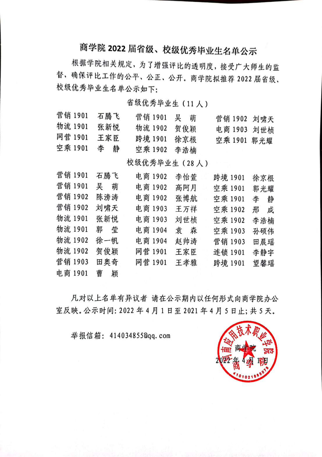 2022届省级、校级优秀毕业生名单公示