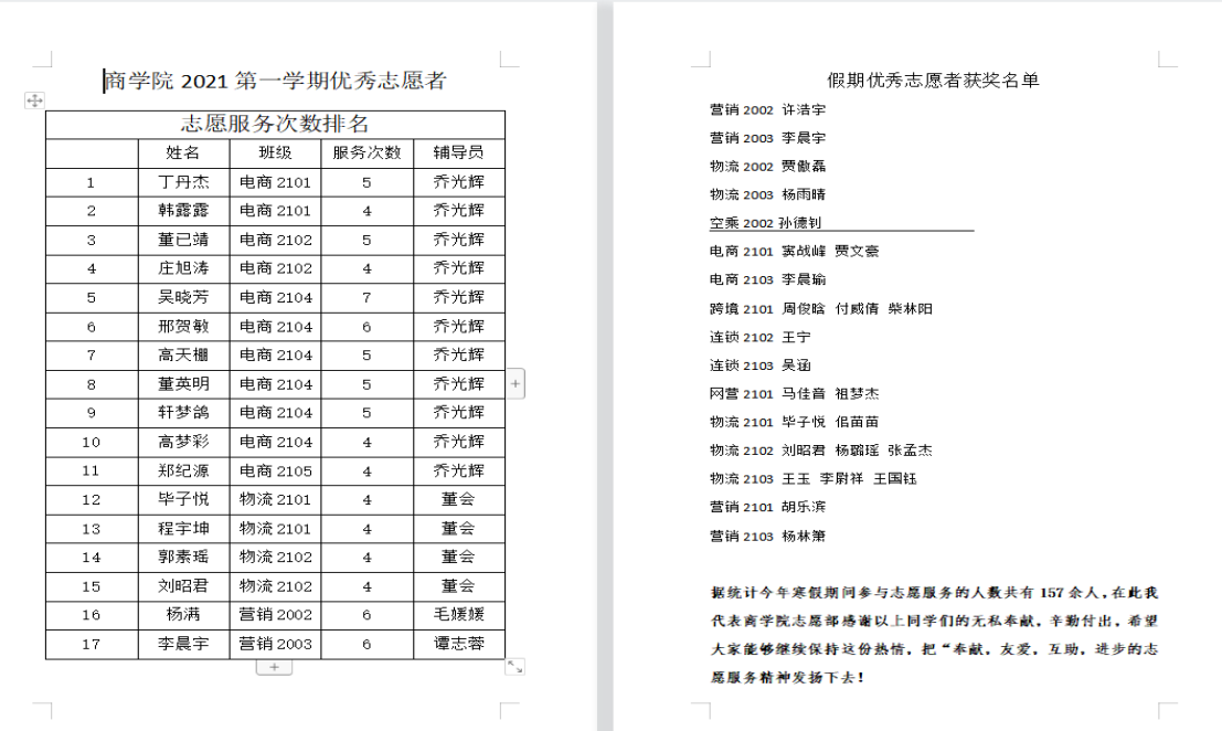 志愿部秉承着“奉献、友爱、互助、进步”的精神,对上学期优秀志愿者与假期疫情志愿者进行了评比,并对优秀志愿者进行了公示。