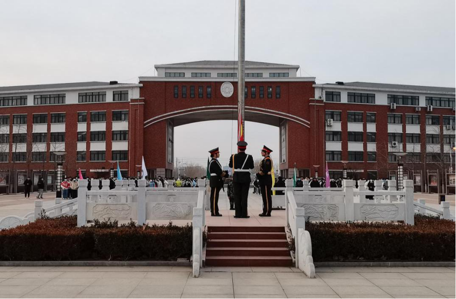 2月21日清晨,迎着朝阳,宣传部在现场拍摄下新学期第一次升旗仪式。