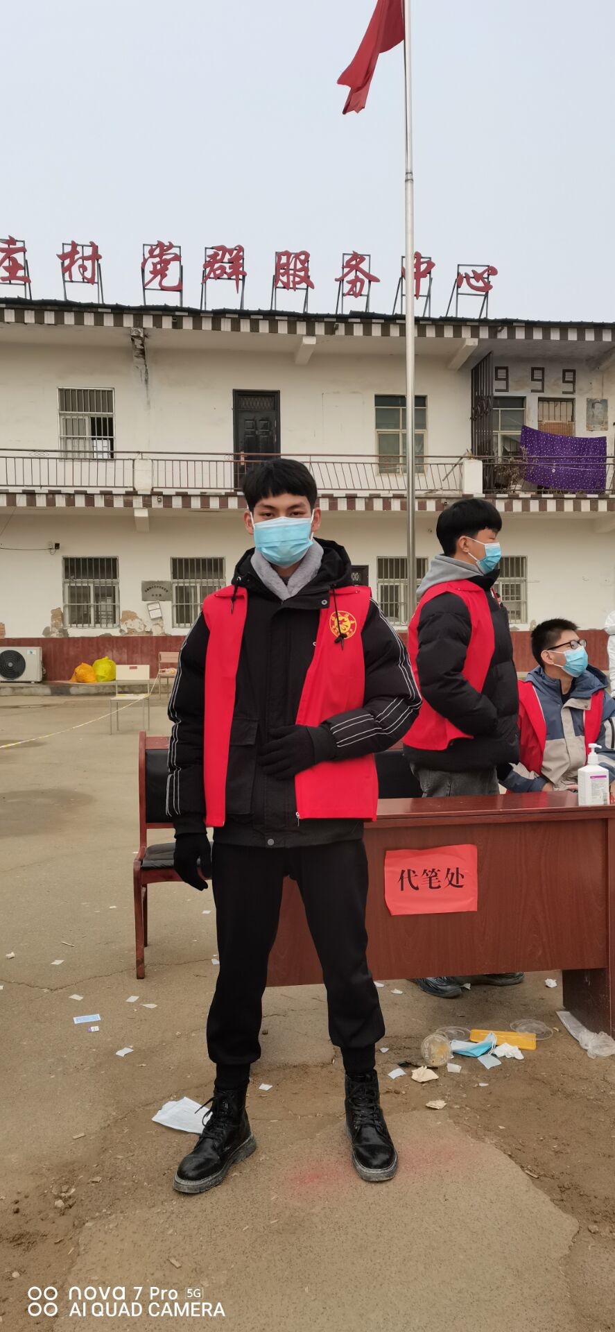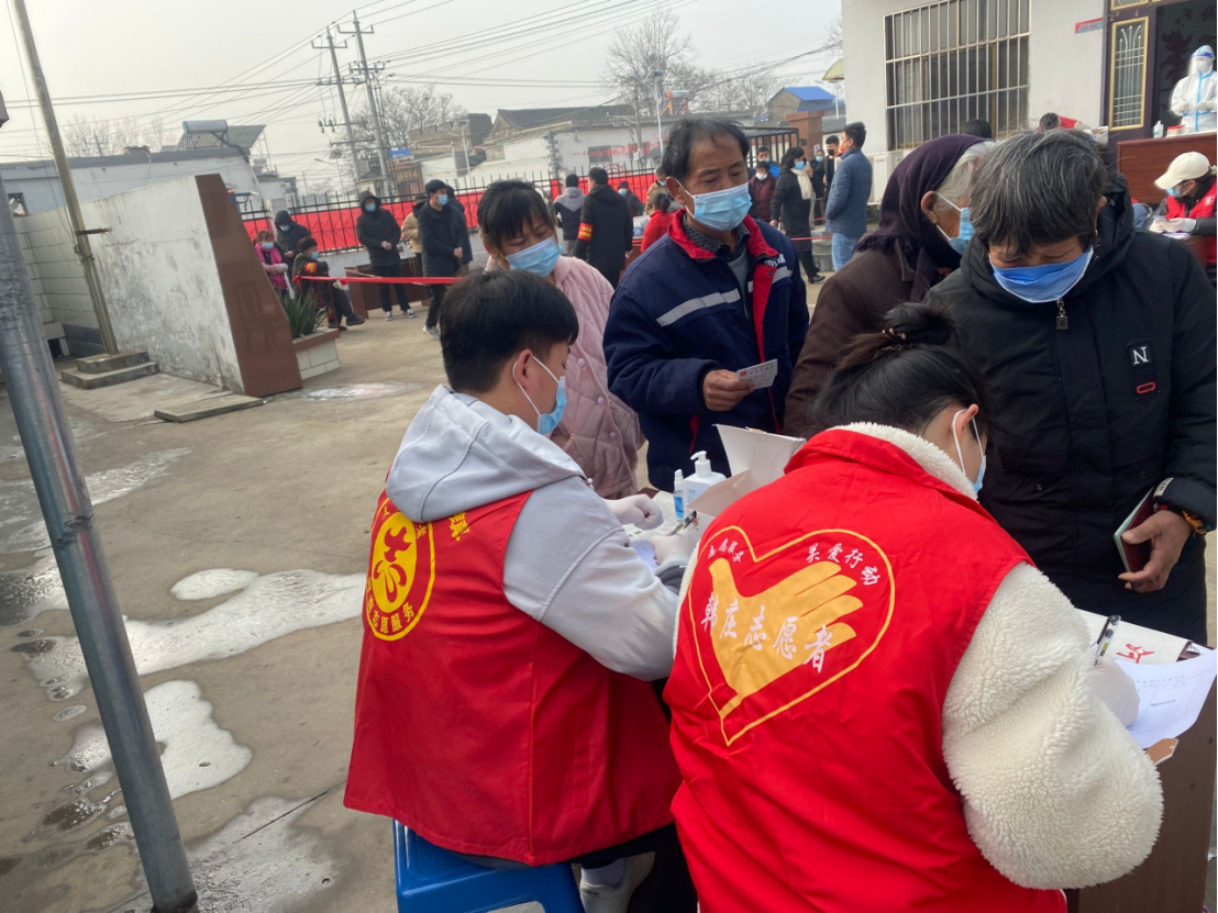 志愿服务内容:村口卡点值班,协助医护人员核酸检测