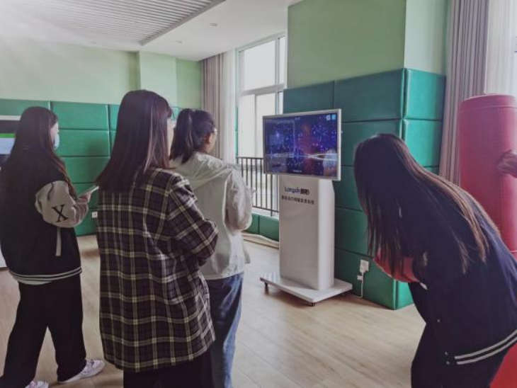 同学们依次学习体验了心理自助预约系统、智能身心减压放松系统、VR体验系统、认知训练系统、智能宣泄互动系统、智能宣泄呐喊系统、团体辅导工具、正念反馈精灵等设施。并利用VR技术为同学们提供高仿真、高沉浸场所,辅助其开展专项心理训练、身心调适、缓解心理压力、提高身心耐受力。