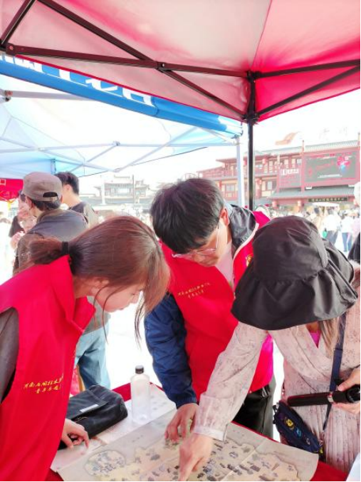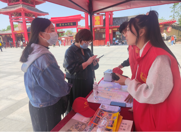在此次志愿服务活动中,3044永利集团志愿者们在清明上河园景区耐心询问并了解游客群众的疑惑,志愿者们不仅为群众提供道路指引服务,还耐心的对外地游客介绍开封著名景点以及最佳的出行方案,并且热心的为旅客朋友们准备了爱心医疗箱。