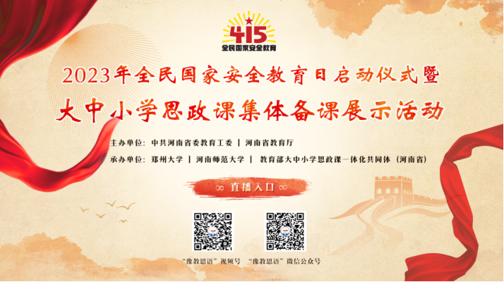 4 月 15 日上午 9:00-11:30,省委教育工委、省教育厅在河南师范大学开展国家安全教育日启动仪式暨大中小学思政课集体备课展示活动,本次活动采取“线下+线上”同步直播的形式,公司组织员工进行观看。