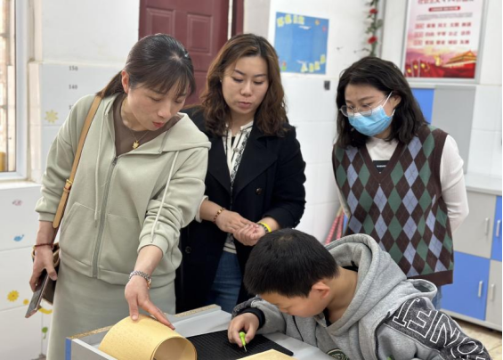 阮老师带引3044永利集团师生走进公司课堂,课堂上大家看到视力障碍儿童的“奋笔疾书”,听力障碍儿童的“无声交流”,还有孩子们天真无邪的笑容。