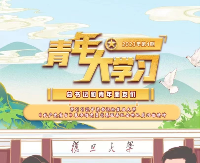 第四期青年大学习我们共同学习了习近平总书记给复旦大学《共产党宣言》展示馆党员志愿服务队全体队员回信精神。