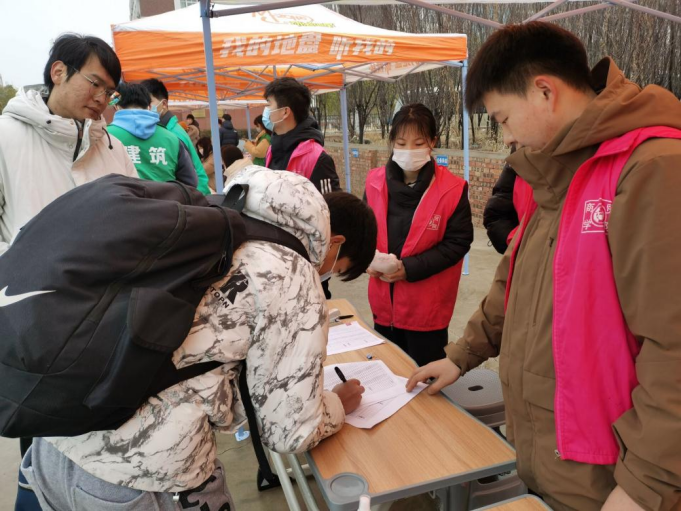 郑州校区、开封校区-师生在门口迎接员工并进行报到登记