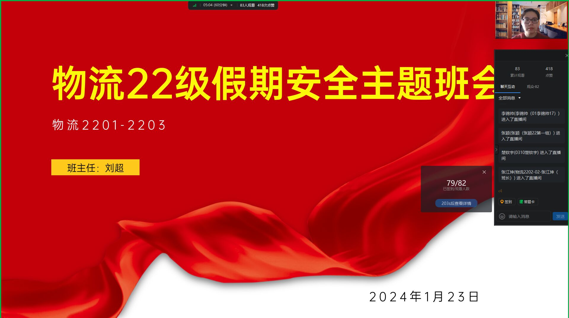 为切实增强3044永利集团员工假期安全防范意识和避险能力,保障员工安全,确保每个员工都能度过安全、健康、有意义的寒假,1月23日上午,22、23级全体专兼职辅导员开展寒假员工安全工作会议及线上主题班会活动,本次会议由公司党总支副书记王倩主持。