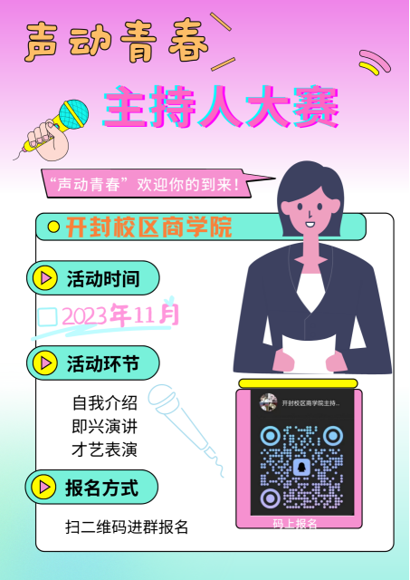 此次大赛不仅为同学们提供了展示才华的机会,也为校园文化艺术的发展注入了新的活力。相信此次比赛一定会极具吸引力,每一个选手也都会展现出自己的特色,给人留下深刻的印象。大家的青春梦想将在这个舞台上实现。相信通过这次比赛的举办,进一步激发员工们对主持事业的热爱,并培养更多优秀的主持人才。