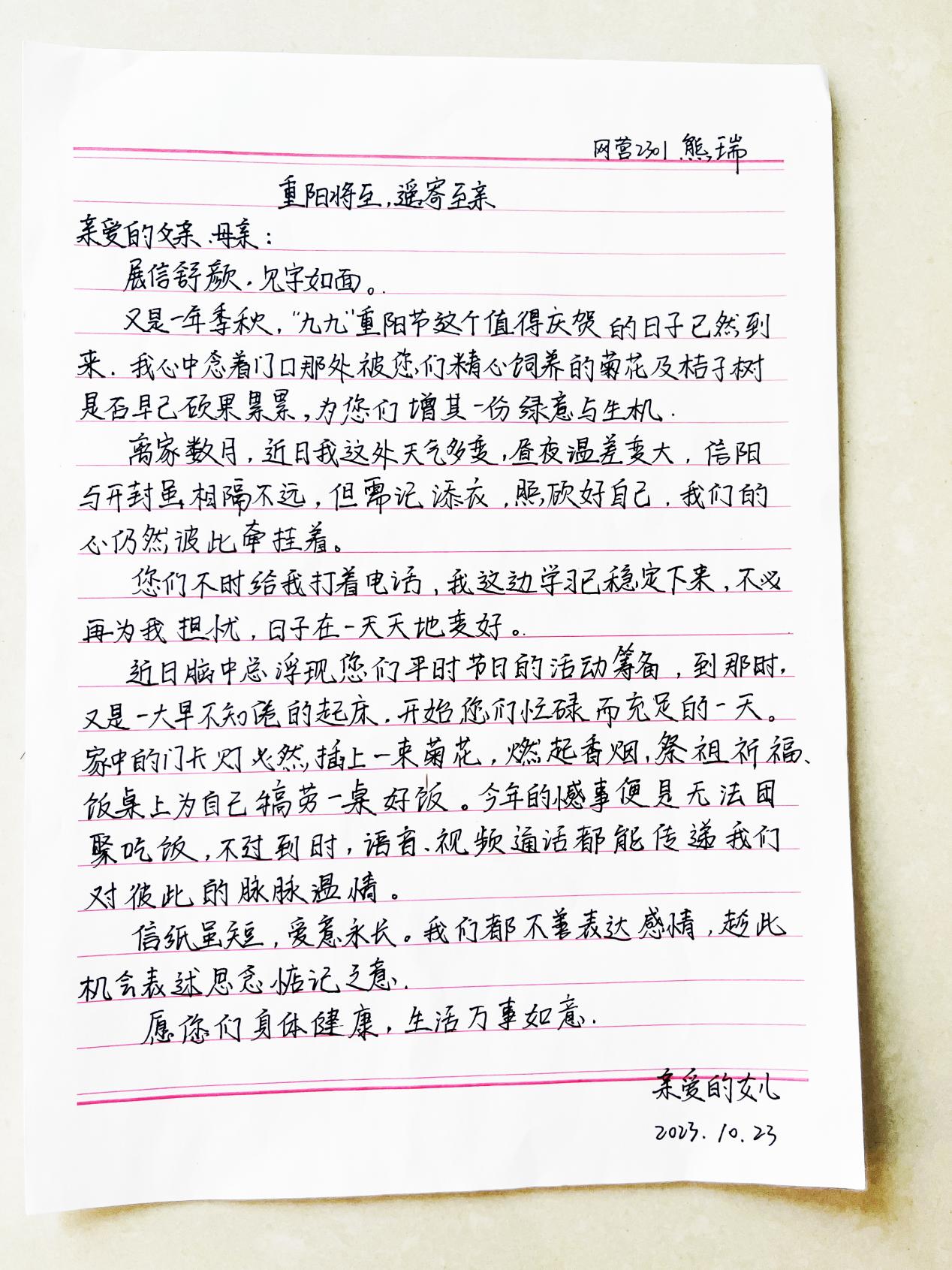 重阳家书送温情 浓浓关怀暖人心