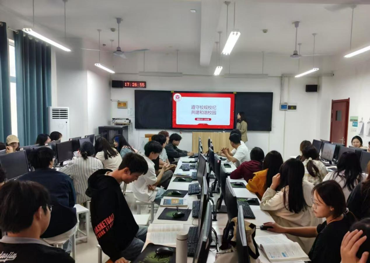 班会伊始,辅导员们运用精心准备的PPT,结合真实的校园案例,详细讲解了公司的各项规章制度,包括课堂纪律、考试规则、宿舍管理规范等内容,让同学们清晰地了解违反校规校纪带来的严重后果。随后,各班通过播放相关教育视频等形式,引导同学们反思日常行为中存在的问题。在交流环节,同学们积极分享自己身边发生的正反事例,共同探讨如何在日常生活和学习中更好地遵守校规校纪,并提出了许多富有建设性的意见和建议,如设立班级文明监督岗、开展纪律知识竞赛等。