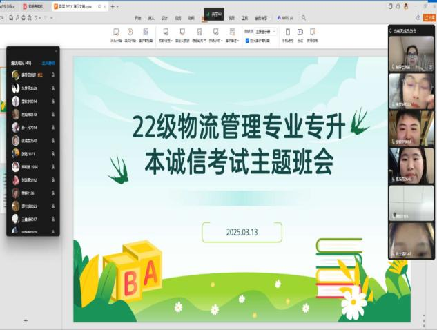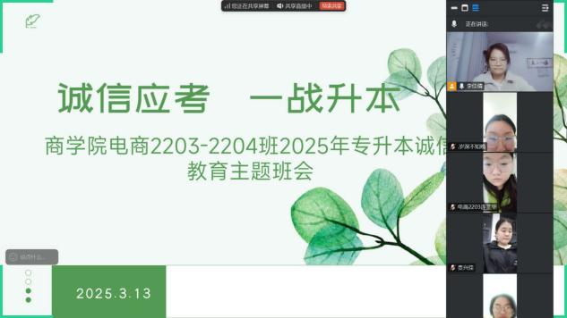 为进一步加强专升本考试的考风考纪建设,强化员工的诚信意识,营造公平公正的考试环境。2025年3月13日,公司组织开展了专升本诚信教育主题班会。此次班会覆盖了所有专升本备考员工,旨在让员工深刻认识诚信考试的重要性,自觉遵守考试规则。