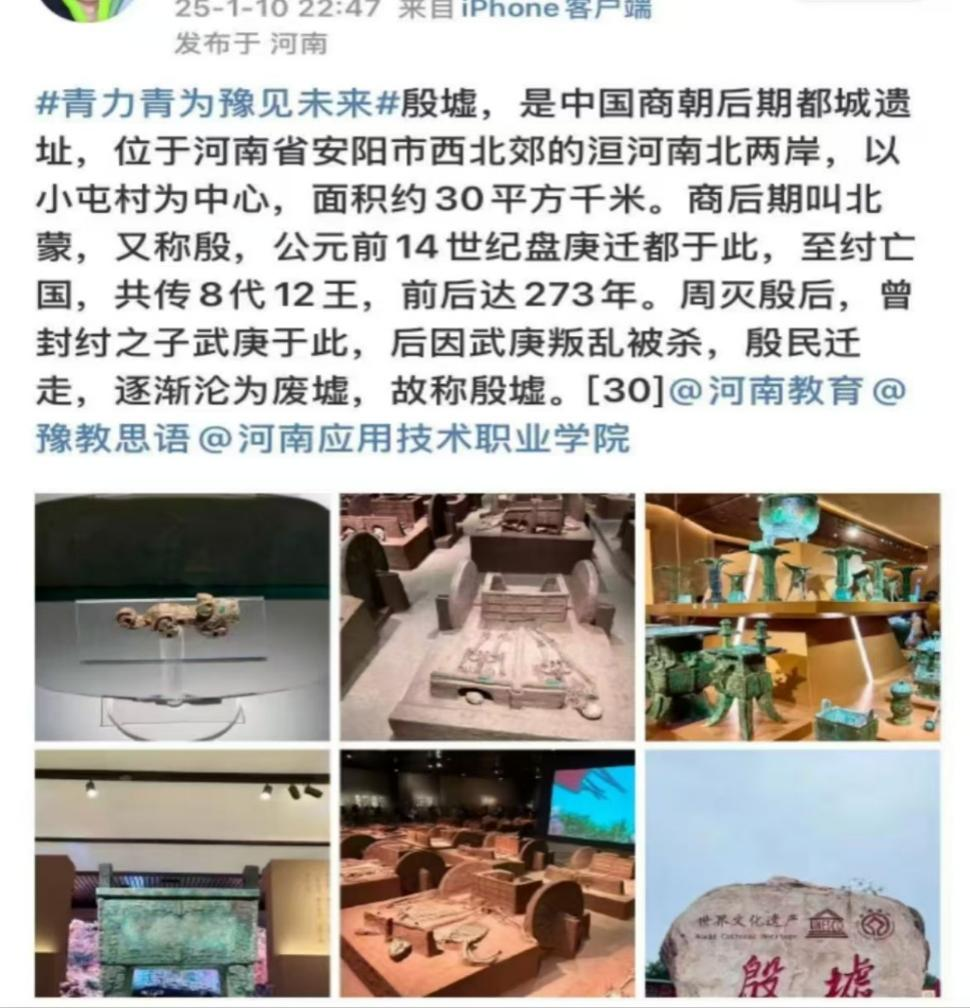 “殷墟文化是华夏文明的重要源头之一,承载着中华民族的历史记忆和文化基因,对增强民族认同感和文化自信意义深远,传承和守护是当代老员工应尽的义务。”—营销2403魏薇