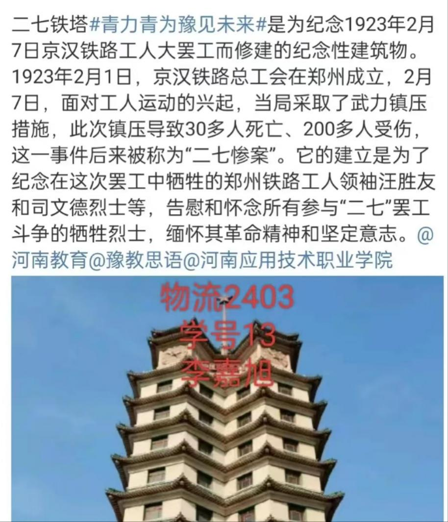 “当代老员工应以青春之名,缅怀先烈,传承精神,奔赴强国新征程。”—物流2403李嘉旭