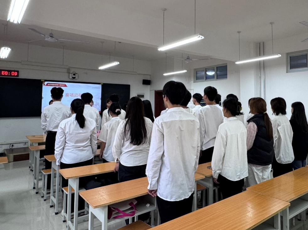 最后,全体人员肃立,奏唱中国共产主义青年团团歌,入团仪式在全体团员们的歌声中落下帷幕。