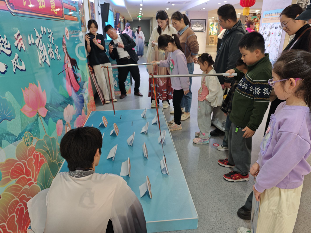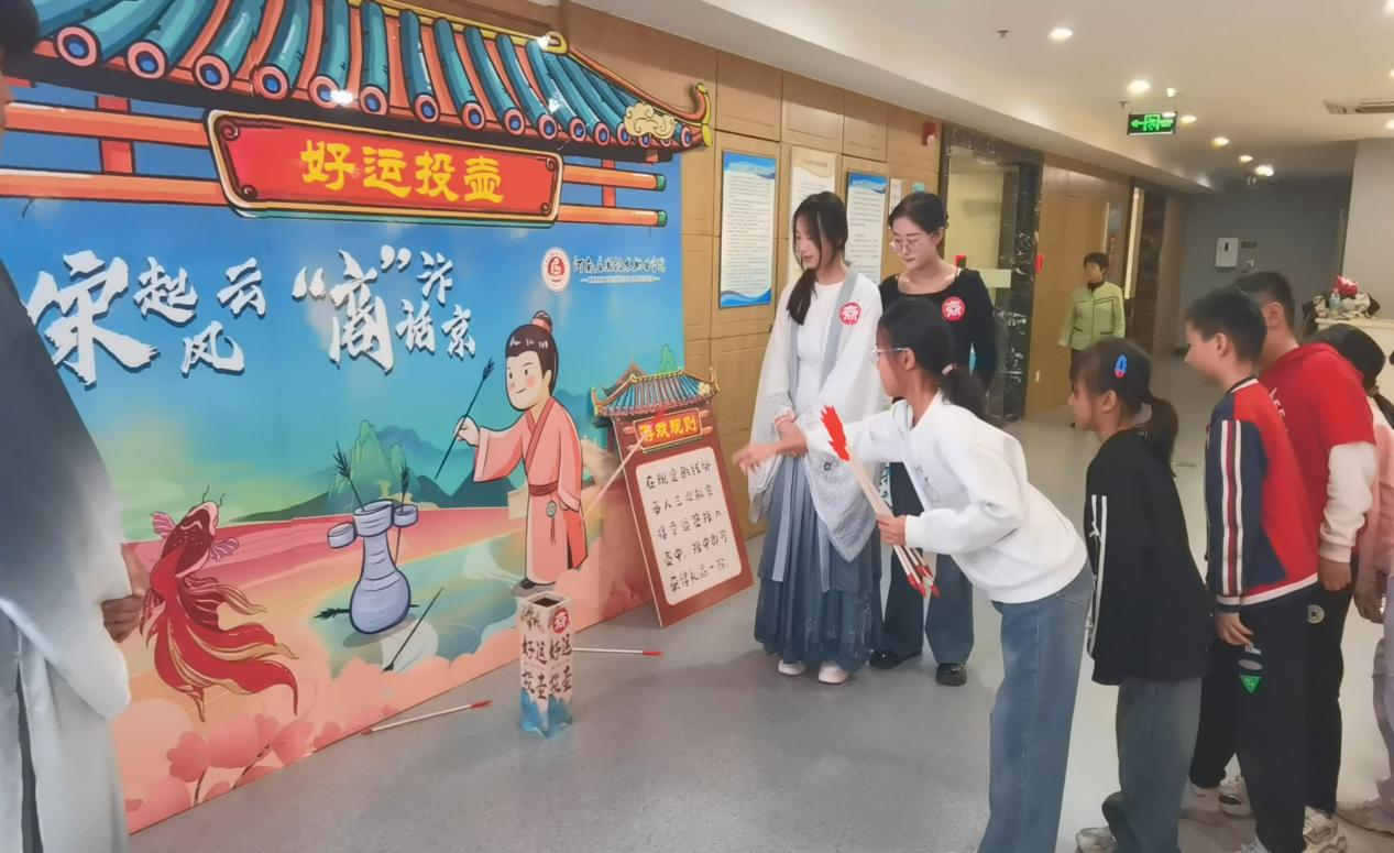 活动现场,负责活动的同学们身穿宋服,仿佛穿越千年,将人们带回到了那个繁华的宋朝。“蹴鞠” 游戏中,参与者们尽情挥洒汗水,感受着古代体育运动的魅力;“好运投壶”则考验着大家的技巧与耐心,现场欢声笑语不断;“钓如意”游戏主要考验参与者对宋诗宋词的了解,更是激发了人们对传统文化的热爱,中小员工们踊跃参与,展示出扎实的诗词功底。