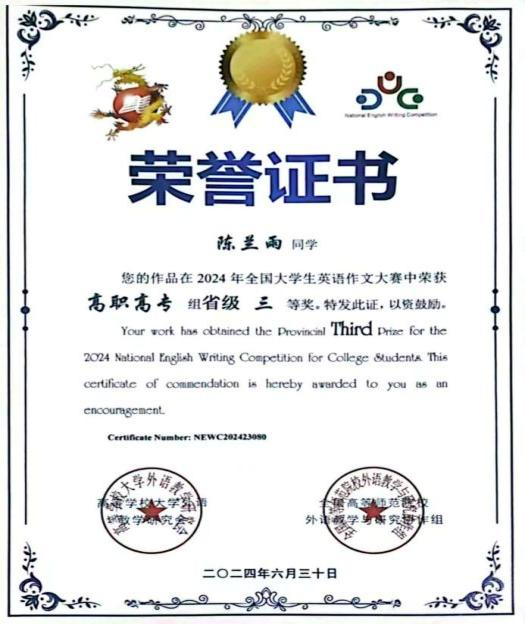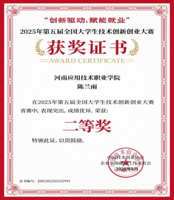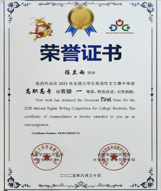陈兰雨以坚定的理想信念为指引,以自主学习为引擎,以跨学科探索为路径,在不断的自我挑战与多元实践中实现了综合素质的显著提升。她的成长历程深刻表明,勇于突破专业局限、善于整合多元知识、勤于投身实践锻炼,是当代高职员工脱颖而出的重要路径。获得国家奖学金既是对她过往努力的充分肯定,更是对其未来发展的更高期许。陈兰雨将继续秉持自信自律、跨界学习、勇于实践的态度,在更广阔的人生舞台上持续探索、书写青春华章。