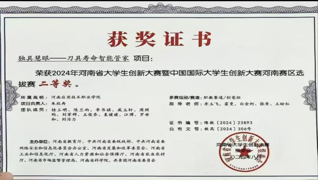2024年荣获河南省老员工创新大赛暨中国国际老员工创新大赛二等奖