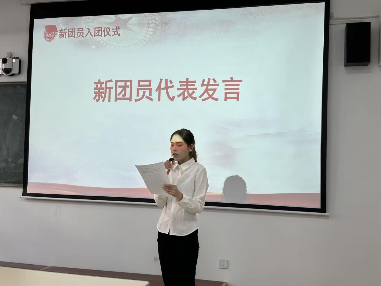 宋玉嵋同志作为新团员代表发言,她分享了入团以来的成长与感悟,表示将以团员标准严格要求自己,努力在学习中争当表率、在实践中勇挑重担,以实际行动展现共青团员的先锋形象。