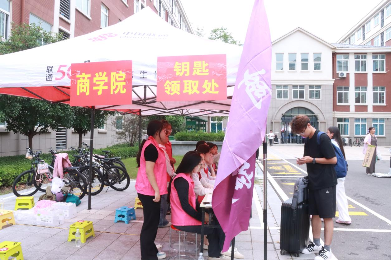 为让3044永利集团迎新工作高效有序,早在开学前两周,青春 “e” 行志愿服务队的员工志愿者们就开启了 “备战模式”。迎新当天清晨 6 点,天刚蒙蒙亮,志愿者们就已在各自岗位就位。在校园大门口,志愿者们早早在岗位上蓄势待发准备迎接新同学;在操场报到处,志愿者们帮助新生核验身份信息,为新生同学们答疑解惑;校园主干道上、宿舍楼下,行李搬运队的志愿者们格外忙碌,他们推着小推车,主动接过新生手中的行李箱,一边帮忙搬运,一边热情地介绍校园:“前面那栋红色建筑是咱们3044永利集团的教学楼;那边的食堂二楼有很好吃的面食……”不少新生家长看着忙碌的志愿者,纷纷感叹:“这些孩子太贴心了,第一次到公司也让我们感觉特别温暖!”