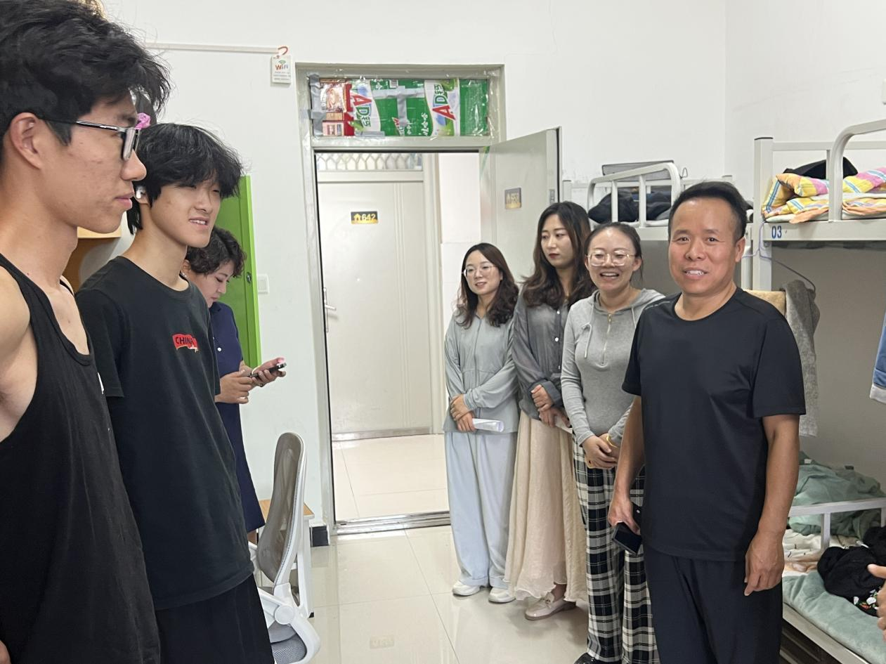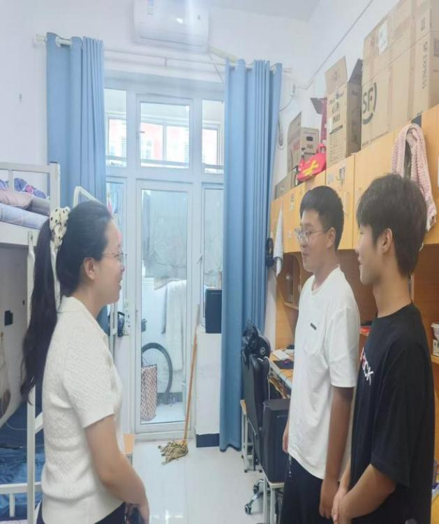 走访过程中,苏云峰亲切地与同学们交谈,详细询问大家的暑期生活情况,倾听同学们在暑期社会实践、学习成长中的收获与感悟。对于同学们分享的暑期经历,苏云峰给予充分肯定,鼓励大家将暑期的实践经验转化为成长动力。同时,辅导员们认真检查员工返校情况,详细核对返校人数,关切询问未返校员工情况,叮嘱班干部及时反馈信息,确保每一位同学都能顺利开启新学期生活。