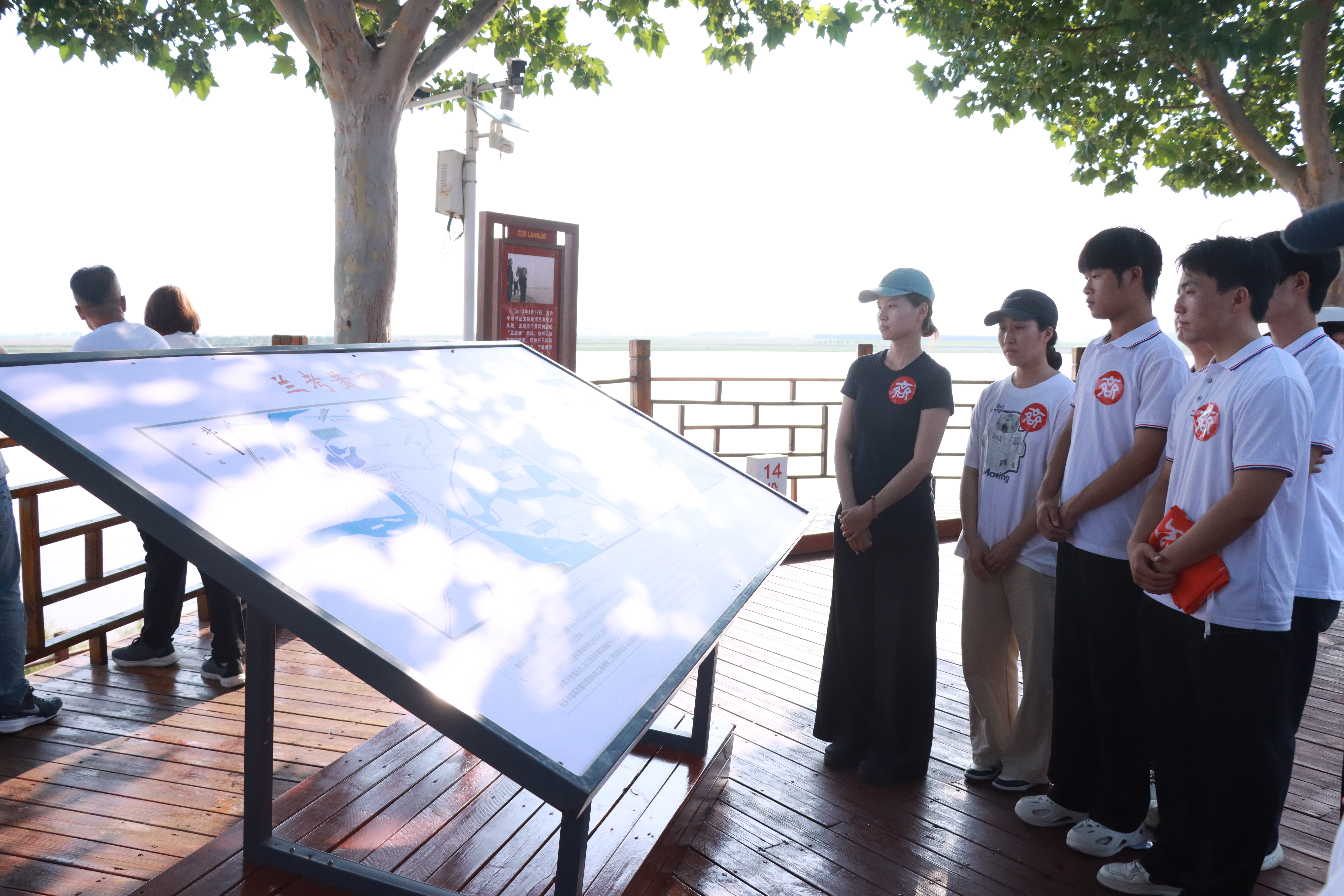 随后董会老师带领员工前往东坝头黄河治理展览馆。馆内丰富的史料和实物,生动展现了兰考人民在党领导下治理黄河、改造家园的奋斗历程。站在黄河大堤上,面对滔滔黄河水,董会老师讲述了兰考过去频发的自然灾害,以及防风固沙工作对保障人民生活、促进经济发展的重大意义。现场师生们深受触动,齐声高唱《黄河大合唱》,激昂的歌声在黄河上空回荡,唱出了对先辈的敬仰,更表达了传承和弘扬焦裕禄精神的坚定决心。