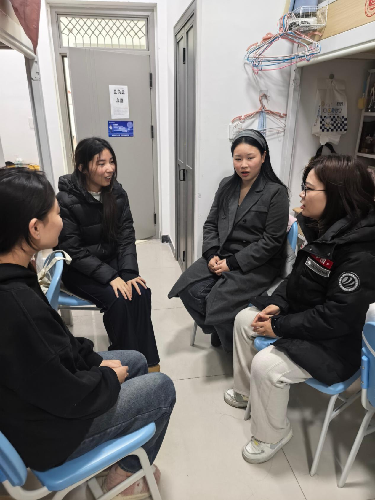宿舍里暖意融融,辅导员与同学们围坐畅谈,大家从期末复习方法聊到备考心态,从寒假规划谈到未来发展。辅导员耐心倾听员工的困惑,针对考前焦虑给出调节建议,围绕老员工活中遇到的问题答疑解惑。面对面地交流拉近距离,让关怀直达心底。