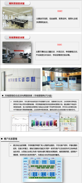 拥有河南省示范性实训基地(工商管理),有市场营销实训室、电子沙盘实训室