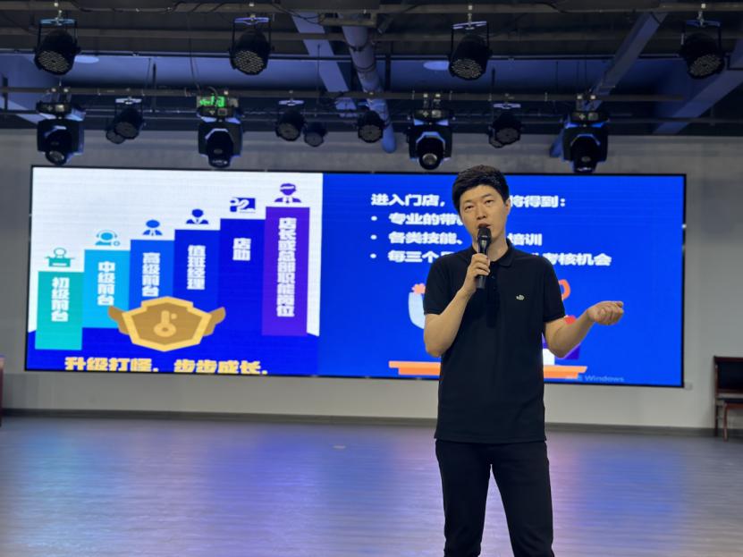 华住集团的校企合作经理刘浩介绍了公司的经营情况、发展渠道、岗位需求、员工待遇,让员工对企业有更加全面的了解,为同学们的发展提供好的平台。