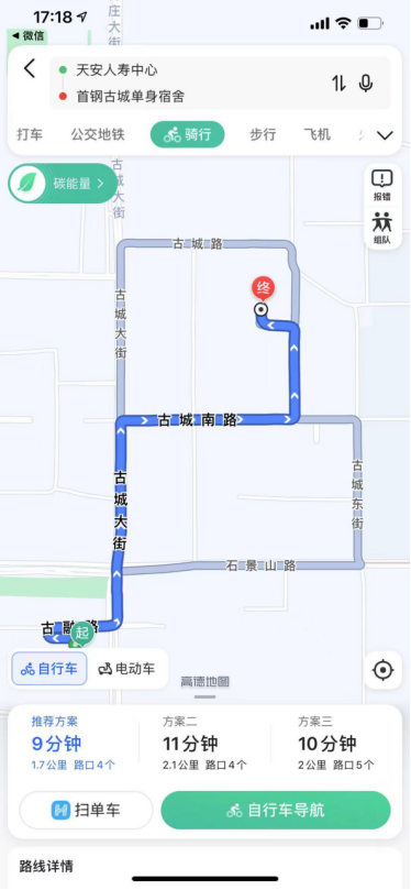 住宿地址:石景山首钢单身公寓,直线距离职场1公里。